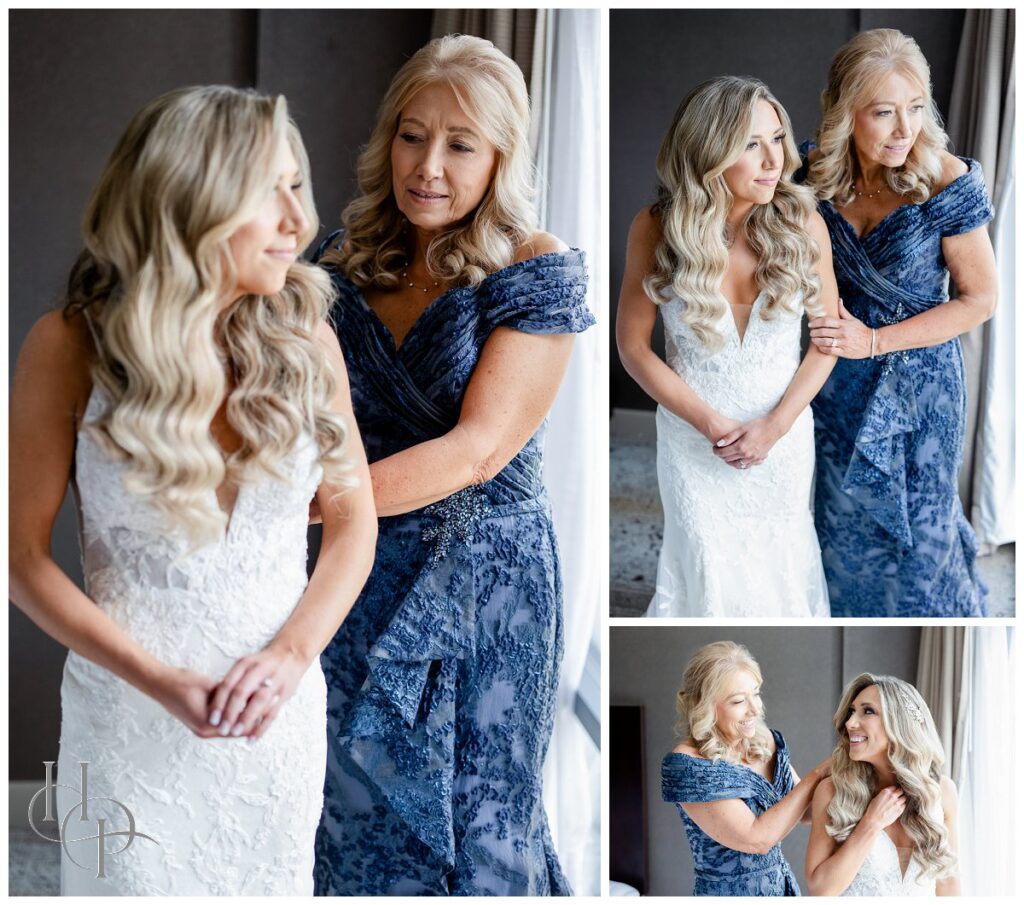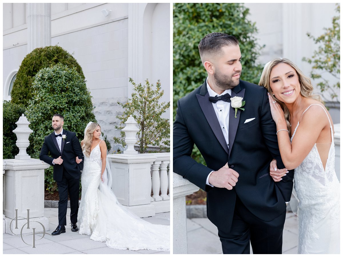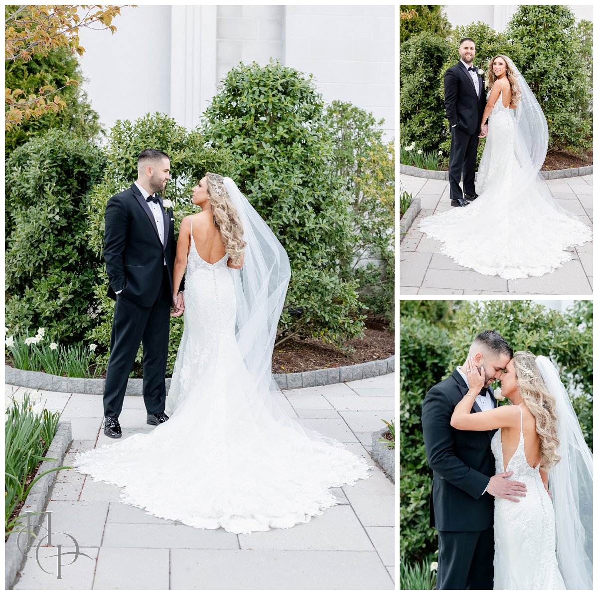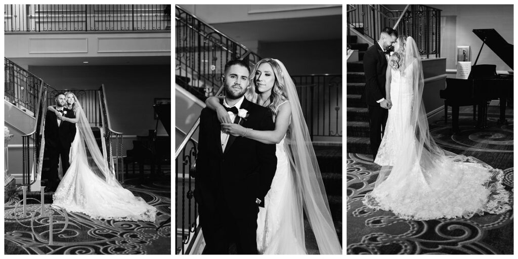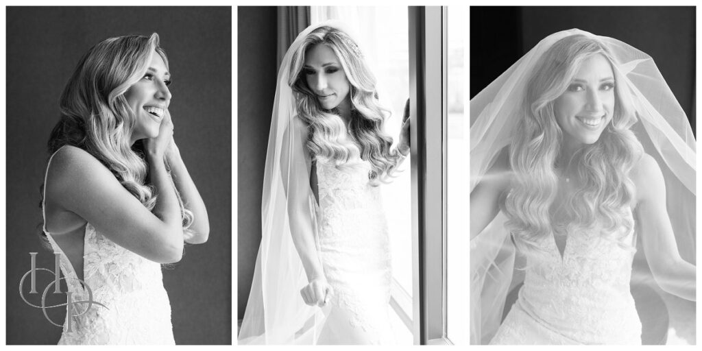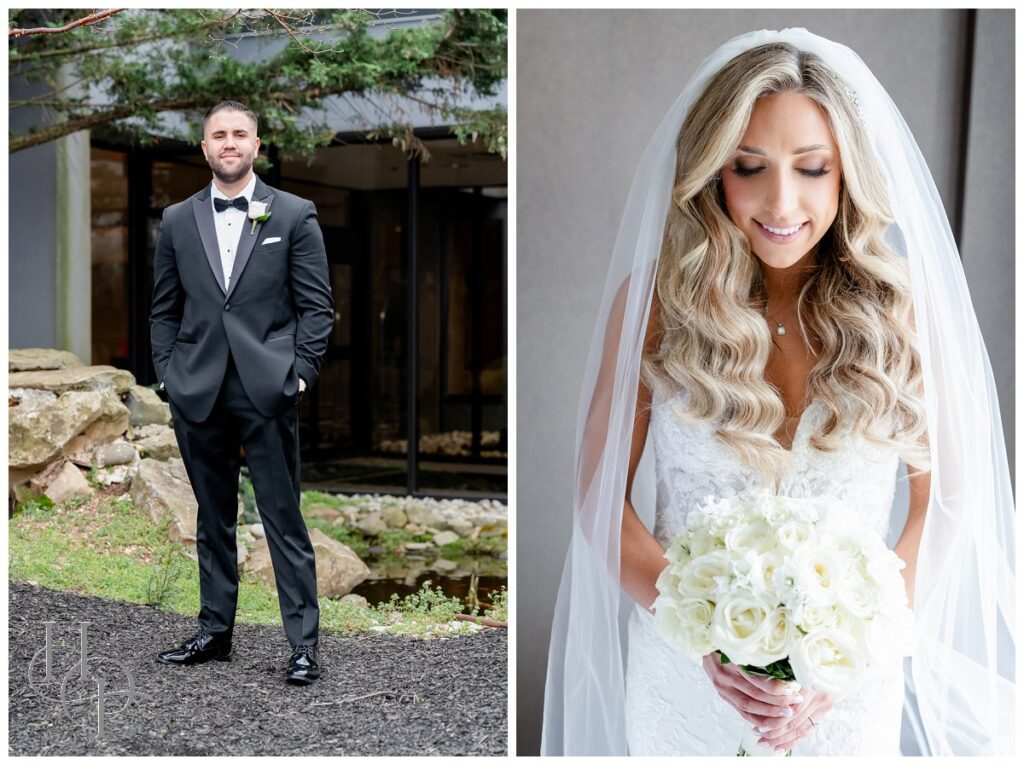 Kristin & Daniel’s modern Spring wedding at The Palace at Somerset Park was absolutely stunning. We started off the day with both our bride and groom getting ready at The Delta hotel by Marriott. Kristin’s mom helped her into her gorgeous Matina Liana gown and veil. She looked absolutely stunning and both her bridal party and her dad were tearing up over it. We spent a little time getting some elegant portraits of our bride and then headed to church.