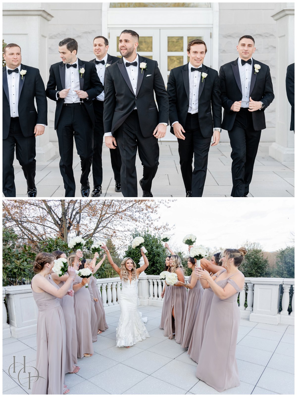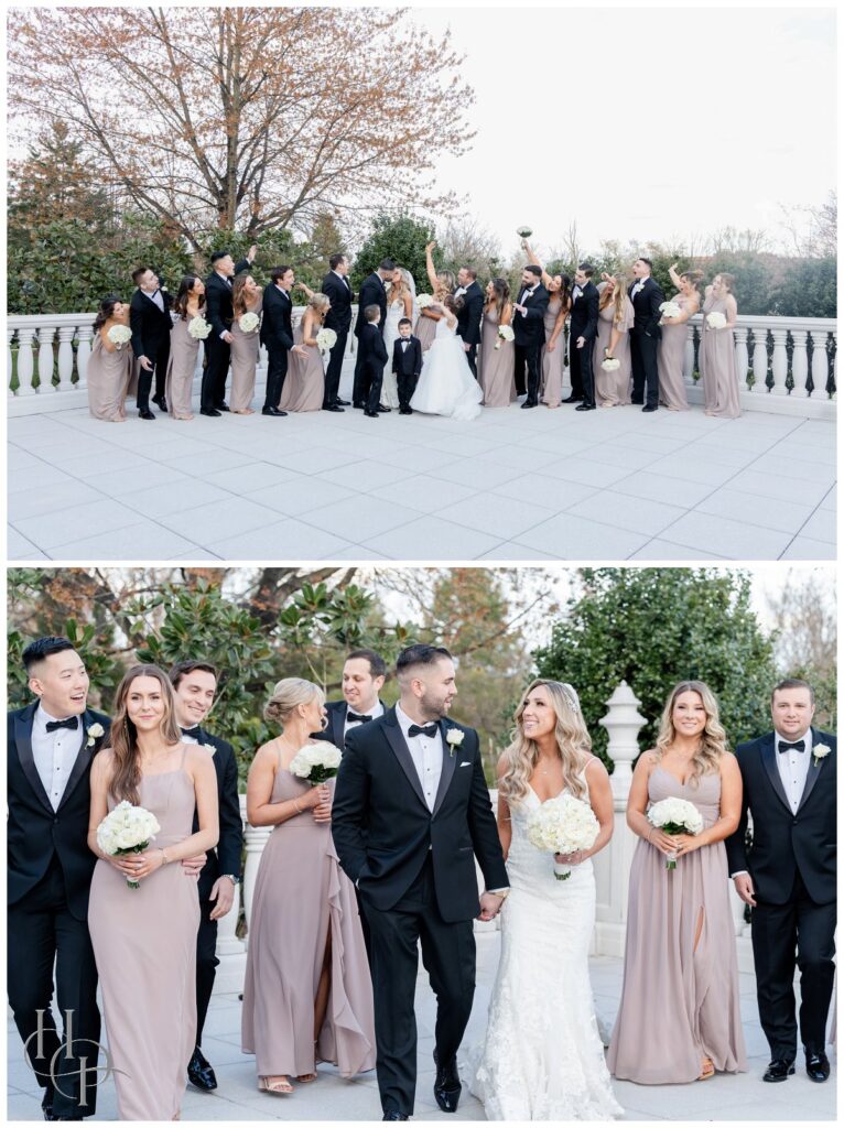 Daniel was awaited his bride at the end of the aisle at the Church of Sacred Hearts. The ceremony was beautiful and everyone cheered for our newlyweds as they kissed. They walked out of church to a shower of bubbles and well wishes. Then it was time to head to our venue. Our bride and groom got some amazing shots with their vintage limo and then explored the venue. They really looked like something out of a fairytale as they walked around the grounds together. We brought out the bridal party for some super fun photos. Everybody was joking and having a blast. We finished off our portraits with some editorial indoor shots of our newlyweds