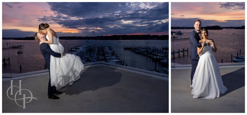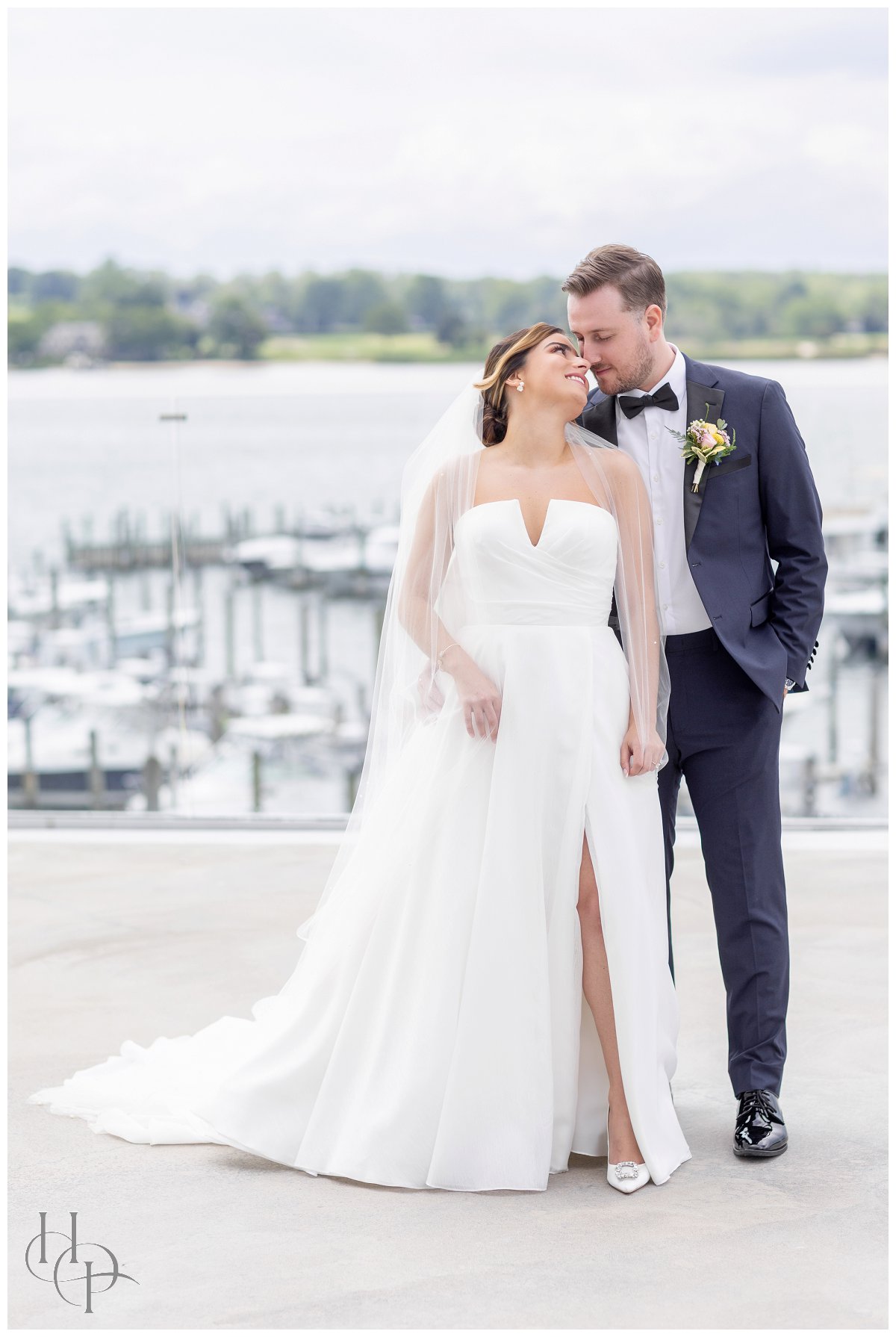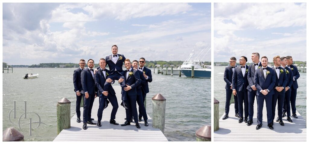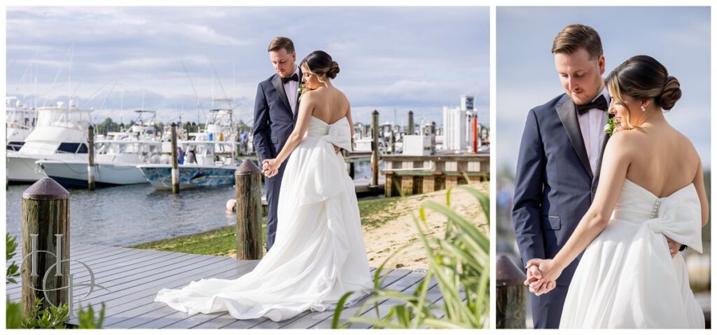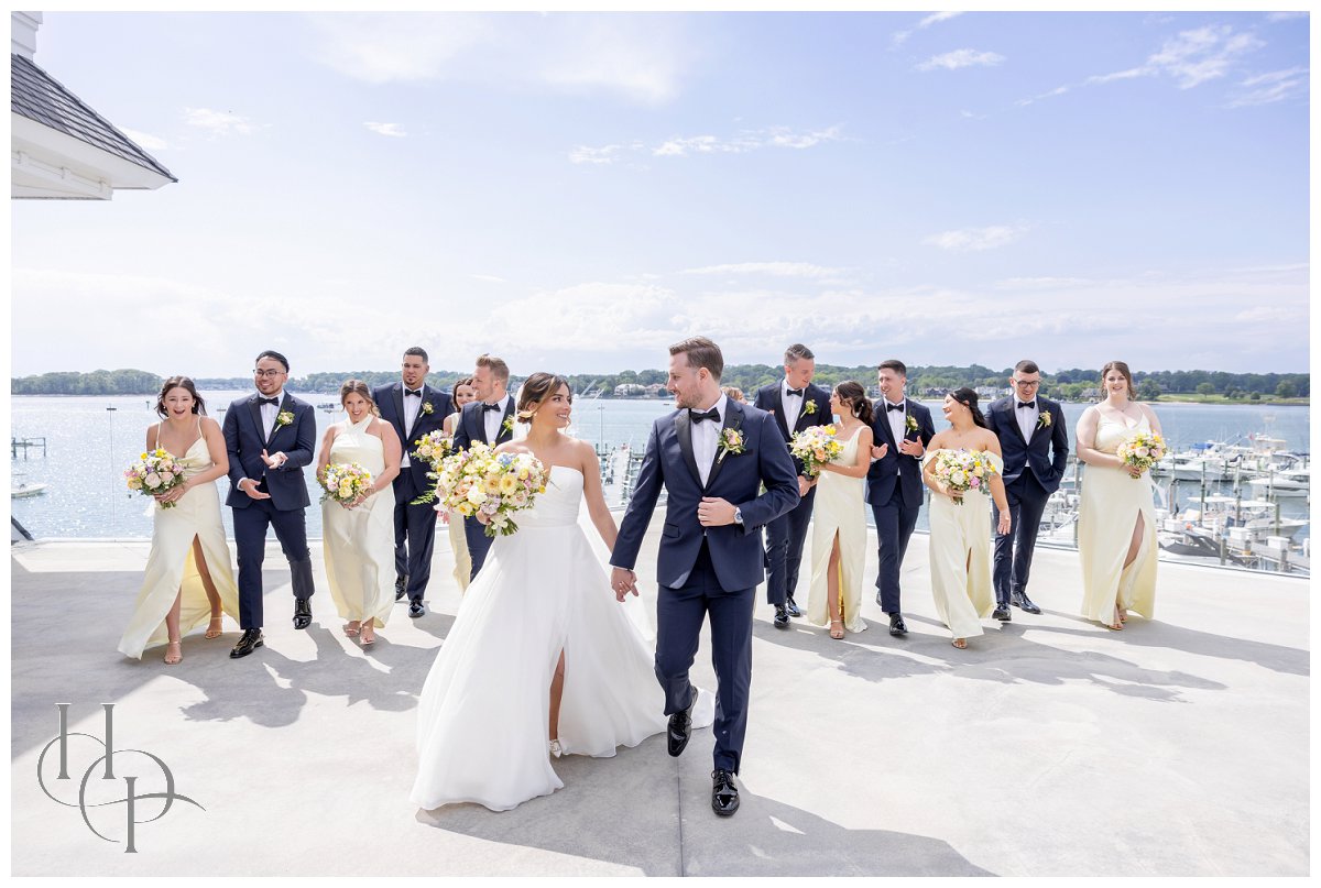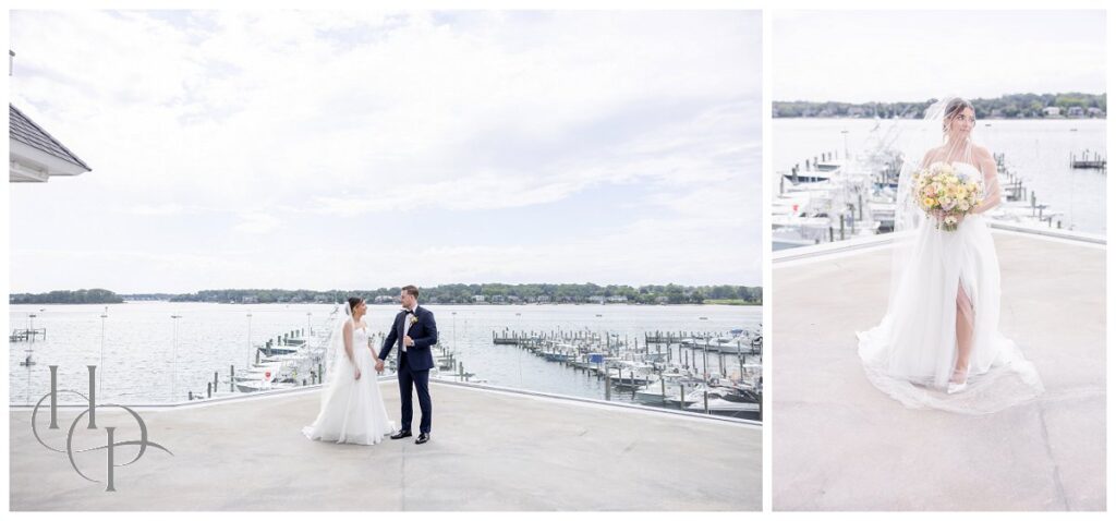 Mary and Greg’s wedding at Clarks Landing Yacht Club unfolded under a perfect sky adorned with puffy clouds and blue waters visible from the docks and back patio! It was a picturesque summer day filled with fresh, colorful florals, only enhancing the joyous atmosphere as the couple, clearly in love, embraced every moment together.