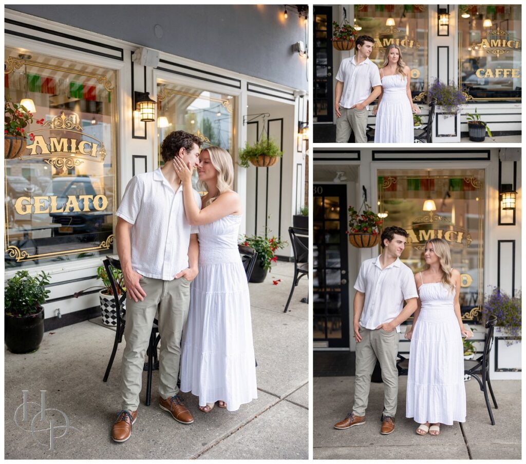 The town’s iconic, small brick-and-mortar stores stood as cozy sentinels along the walkways—each window dressed with twinkle lights, curiosities, and displays reflecting the town’s quirky-cool character. The couple paused hand-in-hand outside a charming Italian eatery, their laughter drifting like music while the aroma of rich pasta dishes mingled in the warm air.