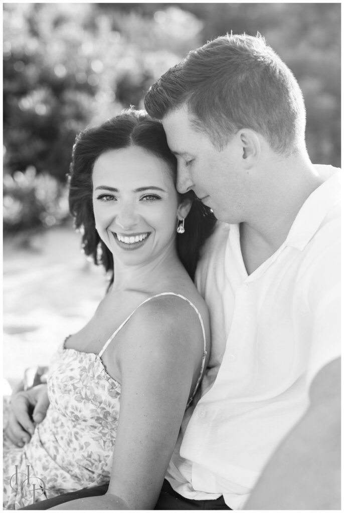 Amid the salty air and sparkling sea, the couple moved as one, always enveloped in each other’s presence. The wind lifted her hair and played with his shirt, adding a playful, natural energy to each photo. It was as if the sea breeze was in cahoots with the sunlight, wrapping them in a cocoon of warmth and romance.