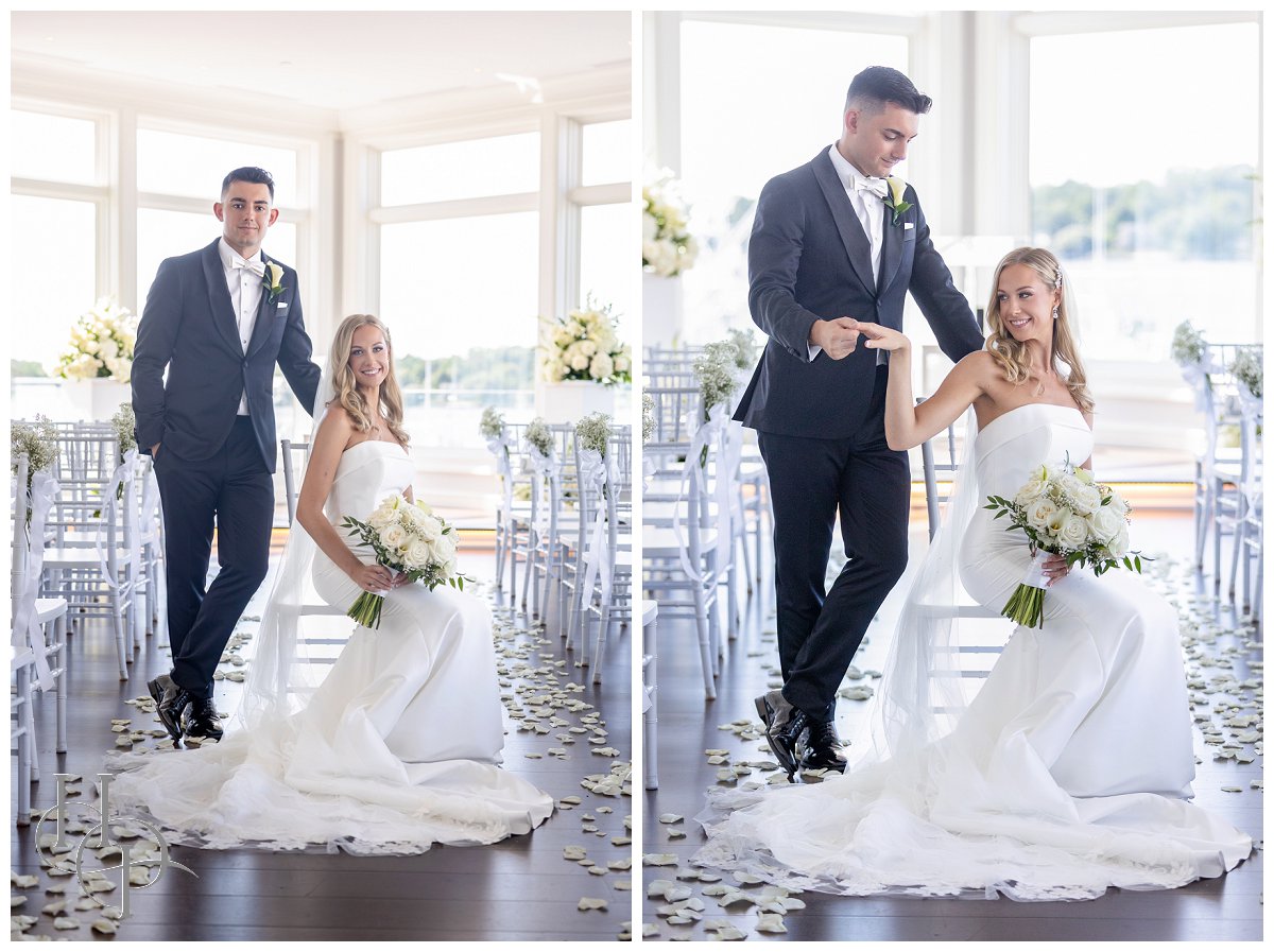 August weddings are particularly special—long summer days kissed by the sun, a gentle breeze rising off the ocean, and the sweet promise of new beginnings. For this Megan & Jeremy, Clarks Landing Yacht Club in Point Pleasant, NJ, transformed into the perfect setting for an elegant celebration that blended nautical charm and classical sophistication.