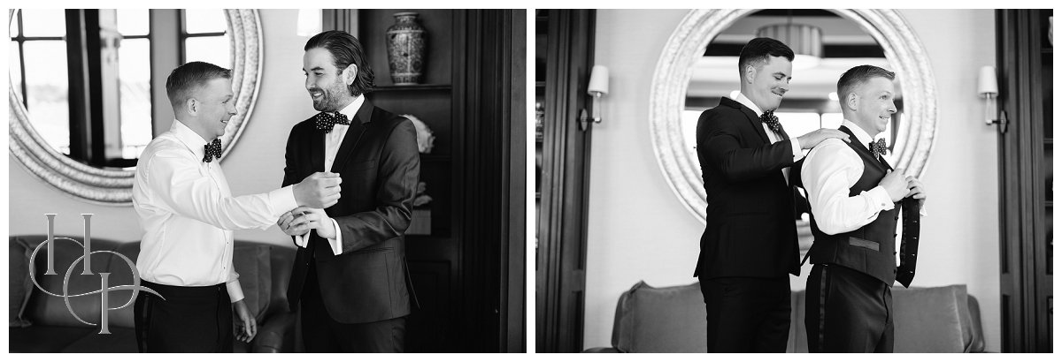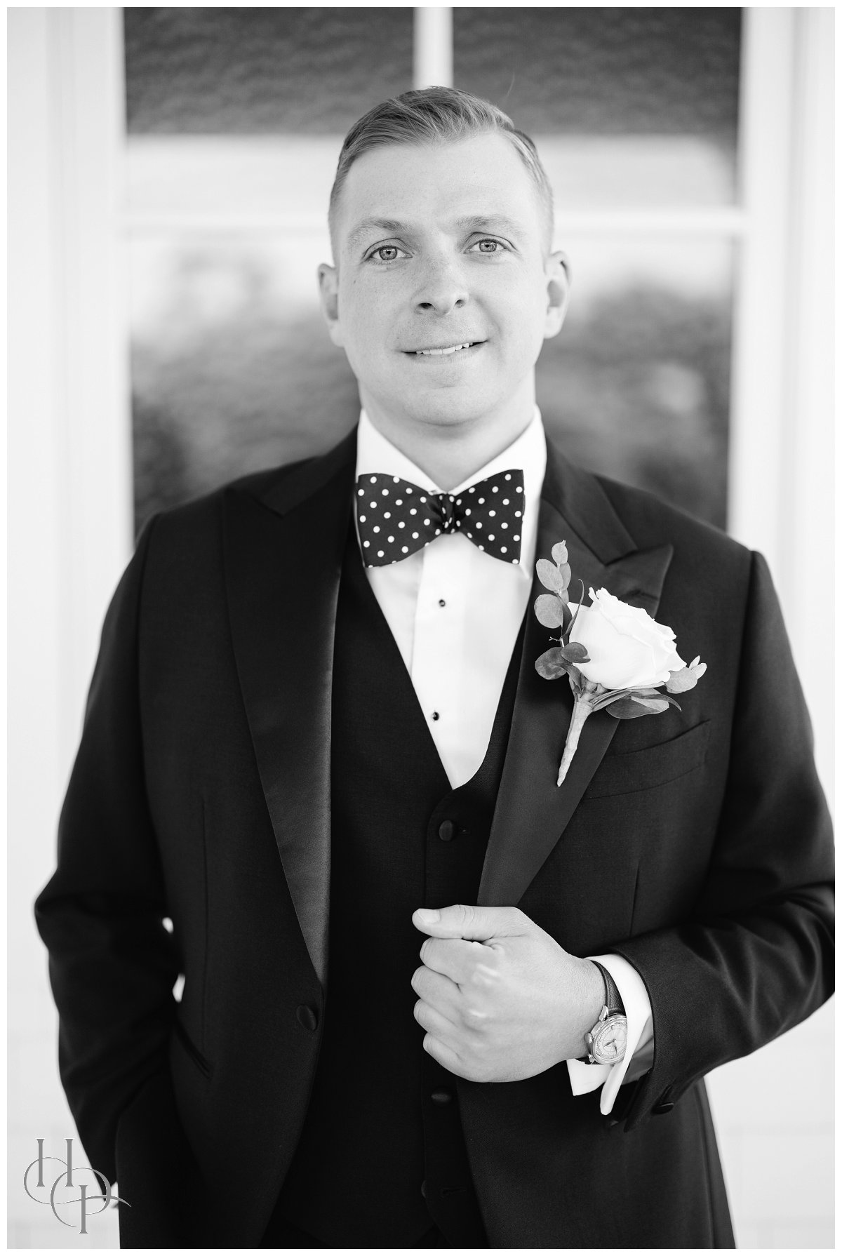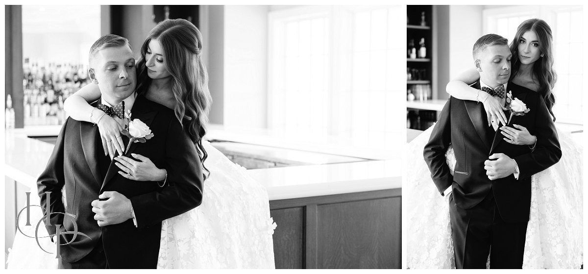 One of the treasures of Clark’s Landing Yacht Club is its interior—warm, refined, and full of character. We took full advantage of the space to create more editorial-style portraits that contrasted beautifully with the bright, outdoor images. Amanda and Andrew settled into rich leather sofas, framed by large windows that overlook the same ocean where they had just posed outside. The reflections of light on the glass, the depth of the furnishings, and the sweeping views beyond created a cinematic quality to these images.